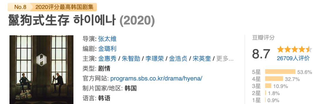 豆瓣常年高分,结尾还能维持豆瓣9.1分,很少见。
